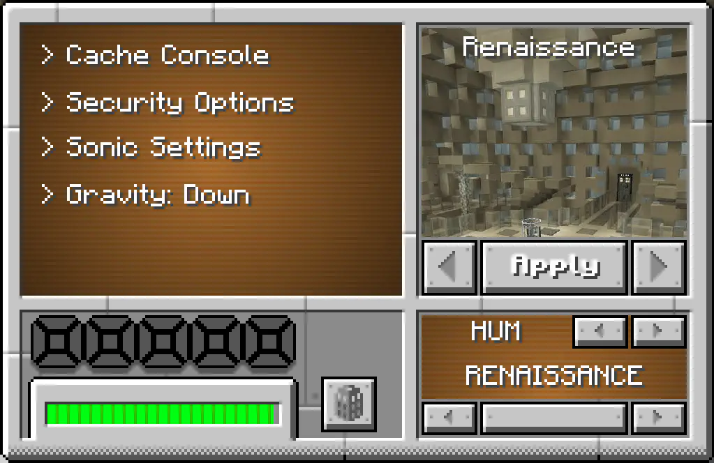 AiT adds a new button on the TARDIS monitors 2nd menu which allows you to set which way the gravity faces the TARDIS.